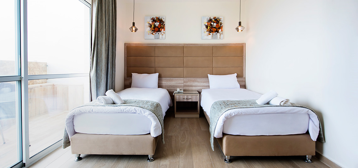 Our signature services make every room a comforting place to ensure a pleasant night’s sleep for the modern traveler. The rooms are quiet and relaxing spaces on all floors. Warm, neutral tones accented by lush textiles create the perfect atmosphere for our guests. Some of our rooms provide breath-taking views of the city of Bethlehem and the Jordan Valley.