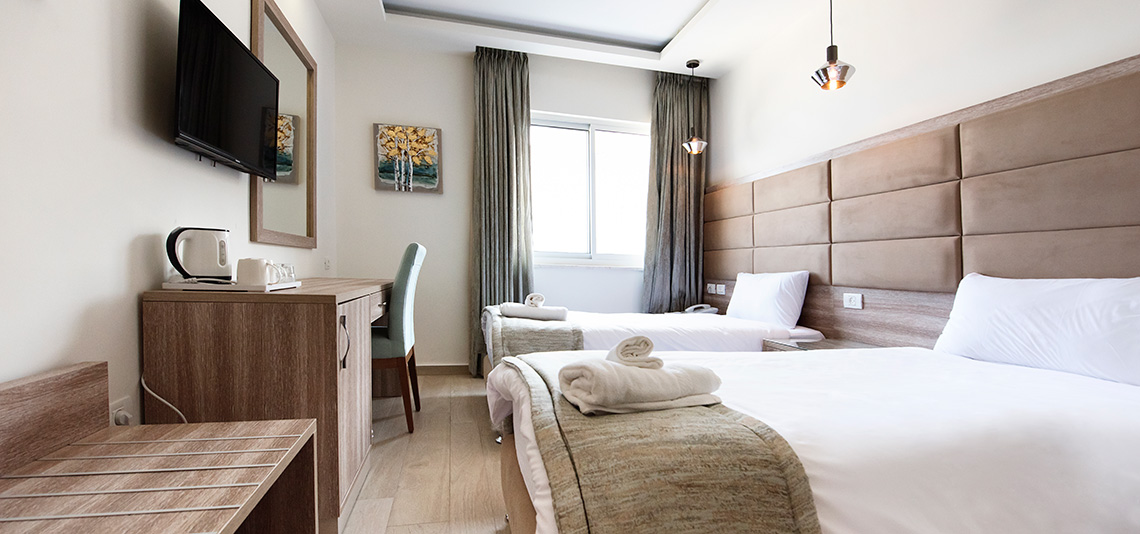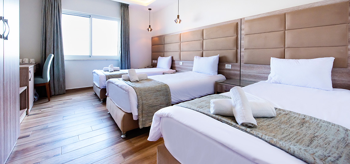 Our signature services make every room a comforting place to ensure a pleasant night’s sleep for the modern traveler. The rooms are quiet and relaxing spaces on all floors. Warm, neutral tones accented by lush textiles create the perfect atmosphere for our guests. Some of our rooms provide breath-taking views of the city of Bethlehem and the Jordan Valley.